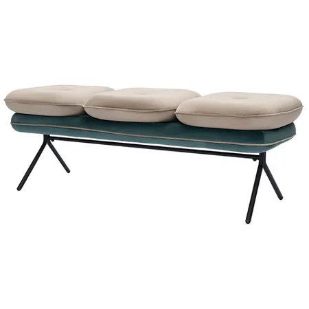 Банкетка Pea, велюр, бежевая/сине-зеленая