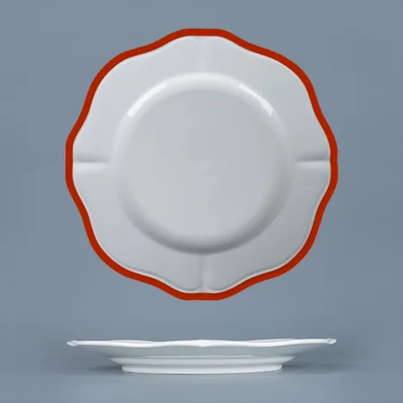 Тарелка мелкая d 21 см h 2 см, фарфор, Grazia, кант красный