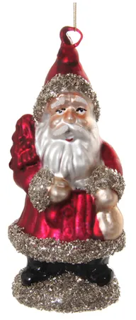 Стеклянный Санта античный матовый красный с золотым блеском 11cm