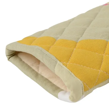 Прихватка-варежка из хлопка горчичного цвета с авторским принтом из коллекции Freak Fruit, 33х17,5 см