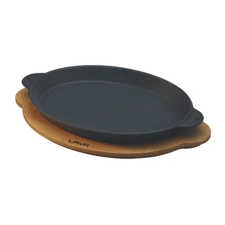 Сервировочное блюдо овальное на деревянном подносе и съемная литая чугунная панель18x25cm. (не включает соусники)