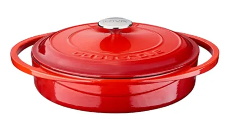 Кастрюля низкая с крышкой, 3,8 л, d 28 см, чугун, цвет красный
