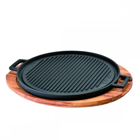 Round griddle/grill plate. dual side reversible. integral metal handles diameter (ø)34cm.