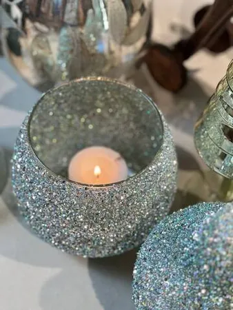 Подсвечник EXNER, стеклянный, с стразами, 17.5 см х 17.5см х 15.5см, серый