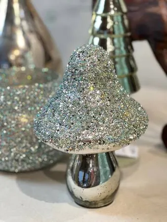 Декоративный гриб EXNER, стекло, зеленый с серебряными/зелеными блестками, 15.5x23см