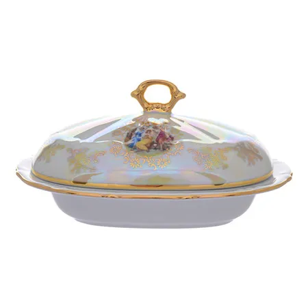 Блюдо квадратное на ножке Queen's Crown Aristokrat Охота бежевая 45*25см