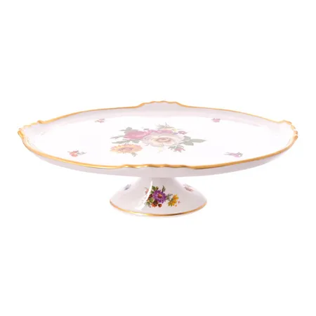 Тарелка для торта на ножке Bernadotte Серая роза золото 32 см