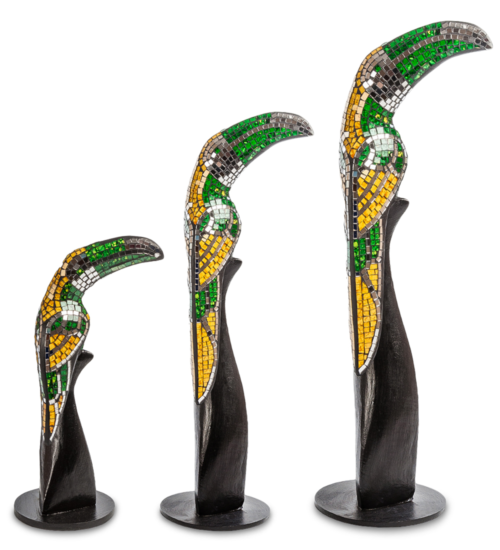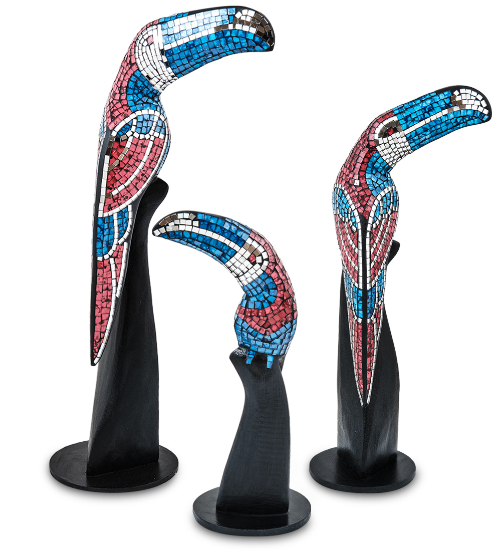 23-029 Н-р статуэток из трех "Тукан" дерево+стекл.мозаика (50,40,30 см)