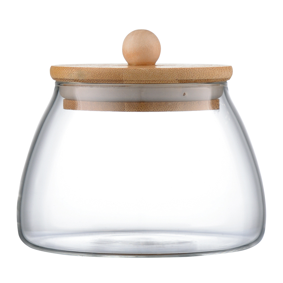 - Крышка из бамбука красиво дополняет стеклянную емкость и плотно прилегает, защищая содержимое от заветривания и попадания влаги.