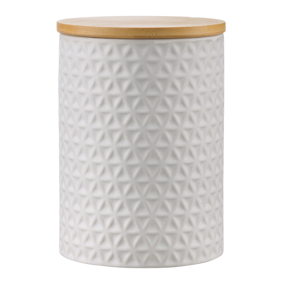 "Банка Farah – прекрасный вариант для хранения круп, макаронных изделий, чая, кофе, муки, специй и пр. Емкость из натуральной керамики является экологичной, не пропускает влагу, свет, не меняет вкус и запах продуктов. Крышка из бамбука гармонично завершает силуэт. Такой дизайн великолепно сочетается с различными стилевыми решениями. Материал изготовления обеспечивает изделию устойчивость к износу и долговечность.
