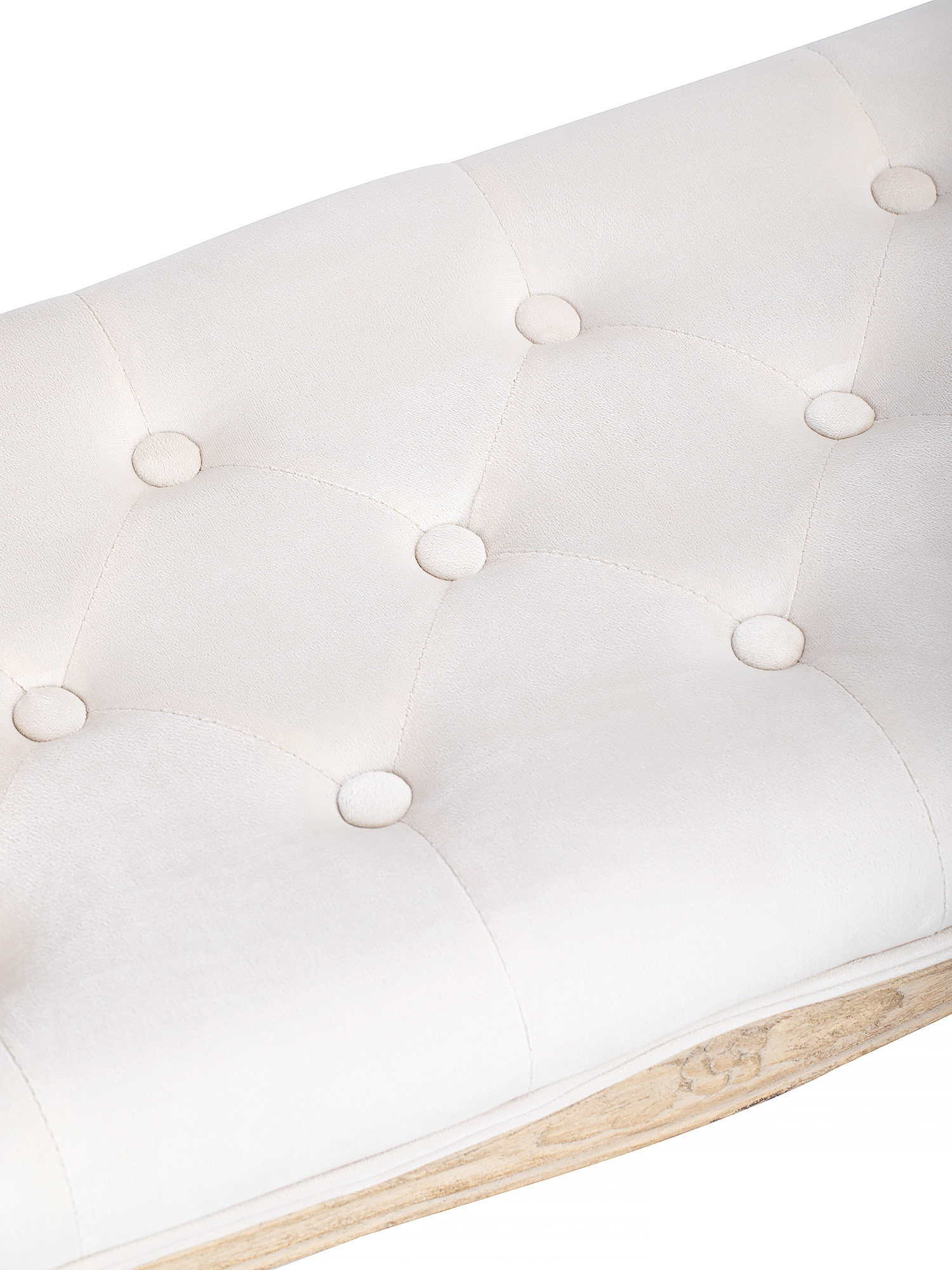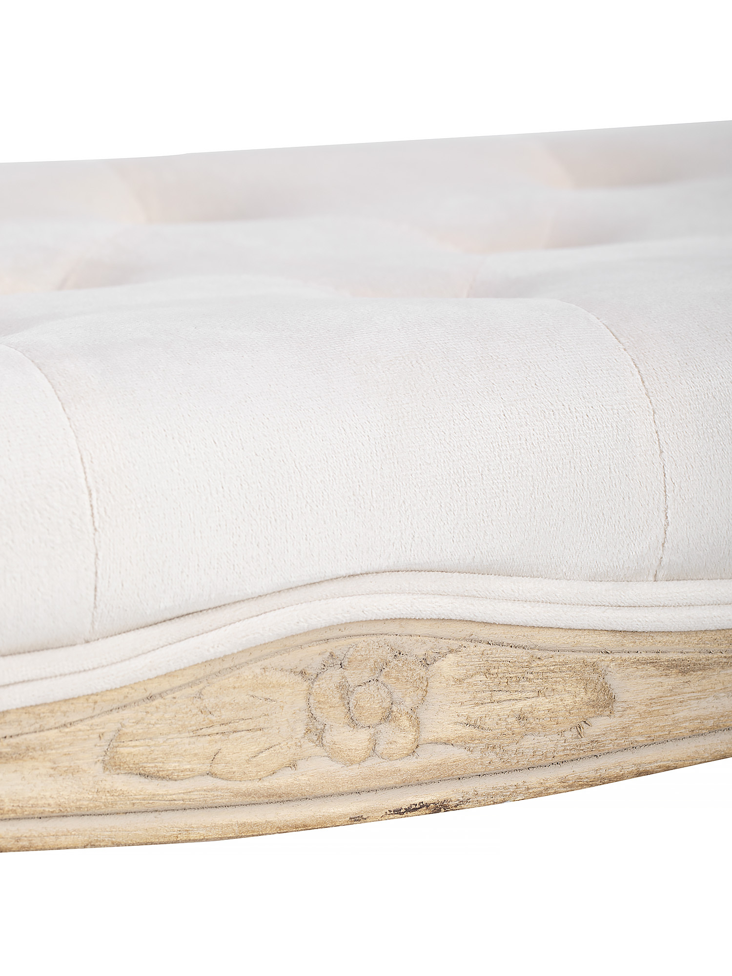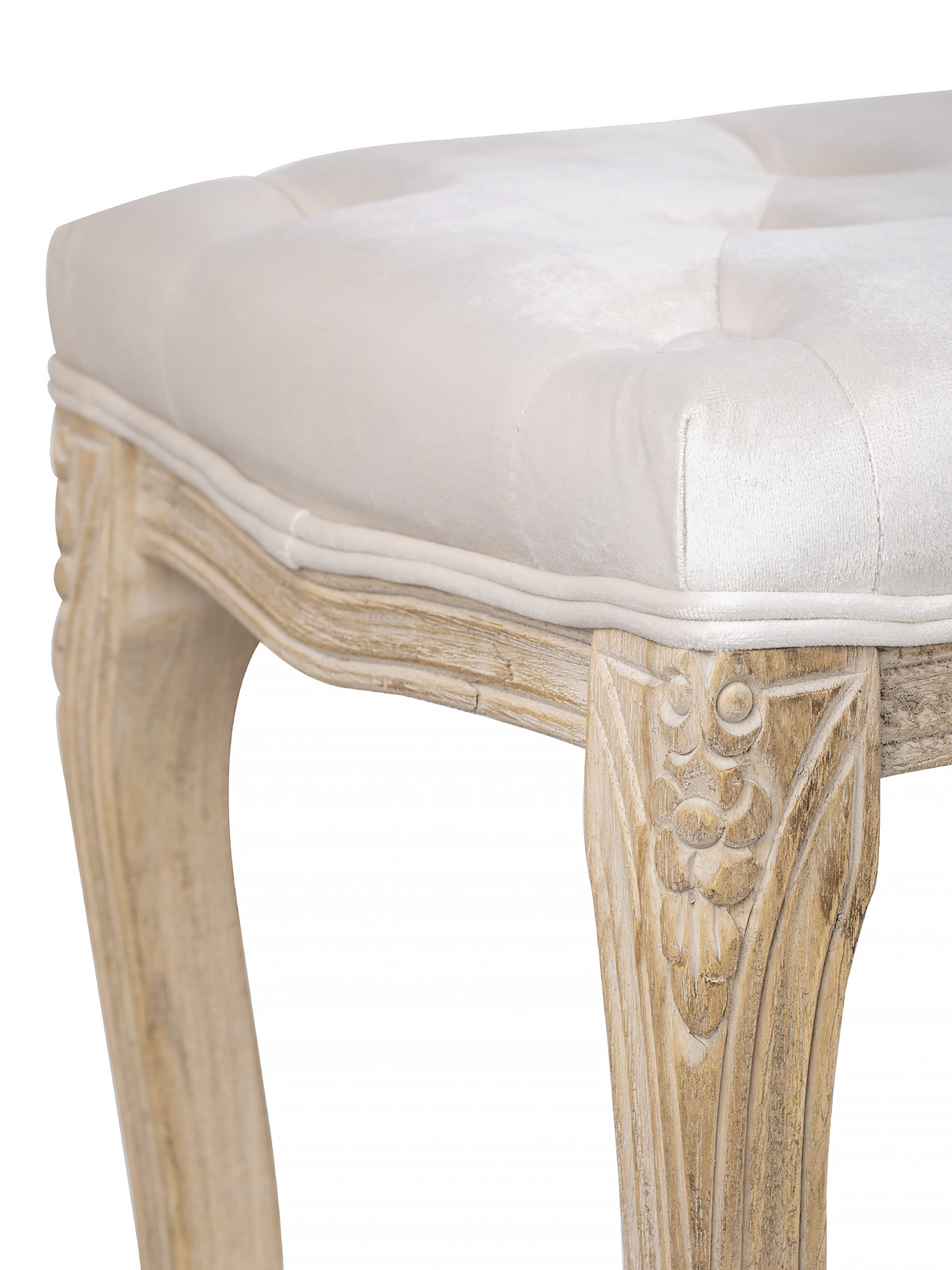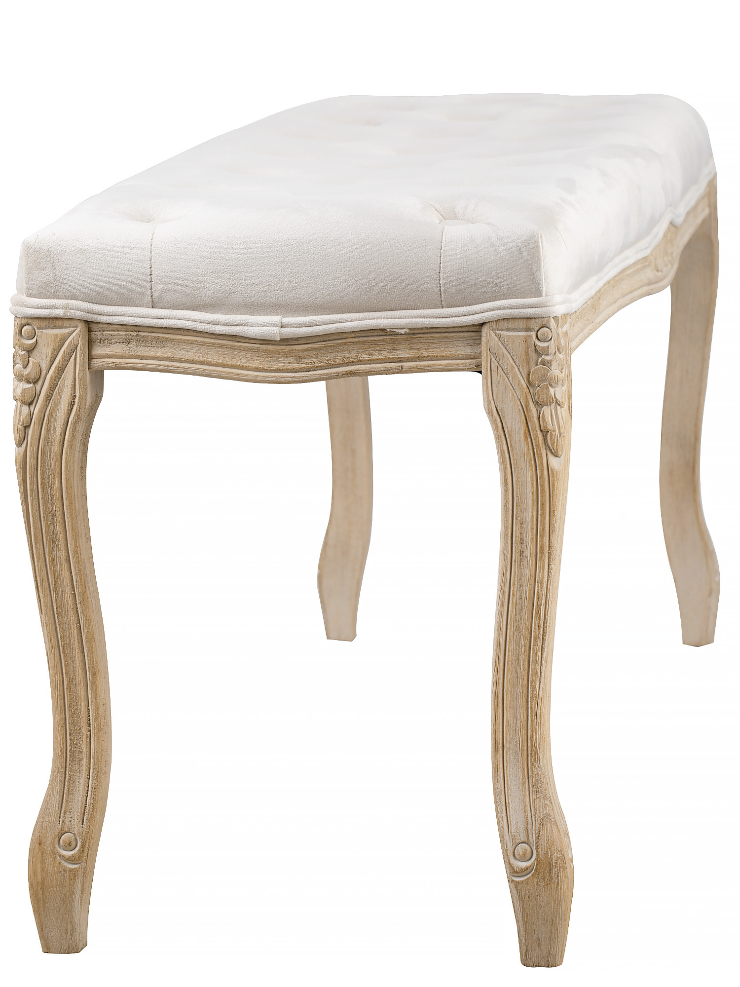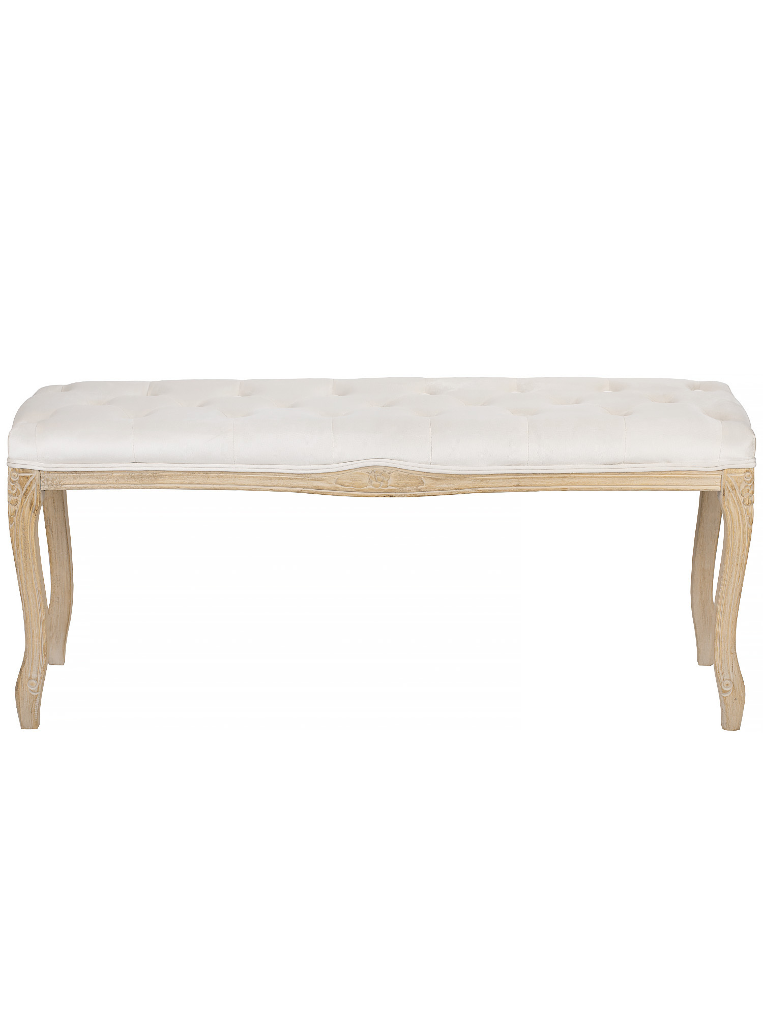 Удобная банкетка для гостей на основании из натурального дерева и с велюровой обивкой. Это изделие станет великолепным дополнением в ваш интерьер. Поверхность деревянного каркаса выполнена с признаками искусственного состаривания и декорирована тонким слоем матового лака, тем самым визуально подчеркивая принадлежность к ручной работе.