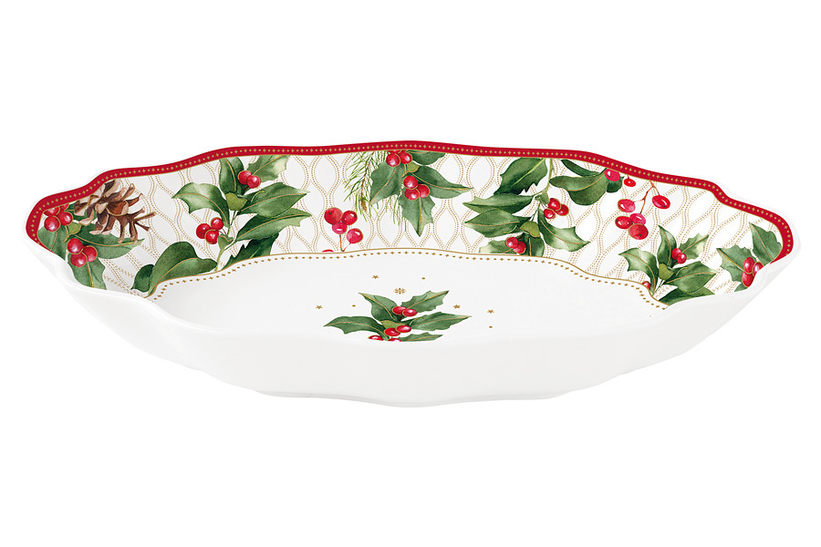 Блюдо, 24,5х17 см, фарфор P, белое, с красным кантом, овальное, Ягоды и листья, Christmas Berries