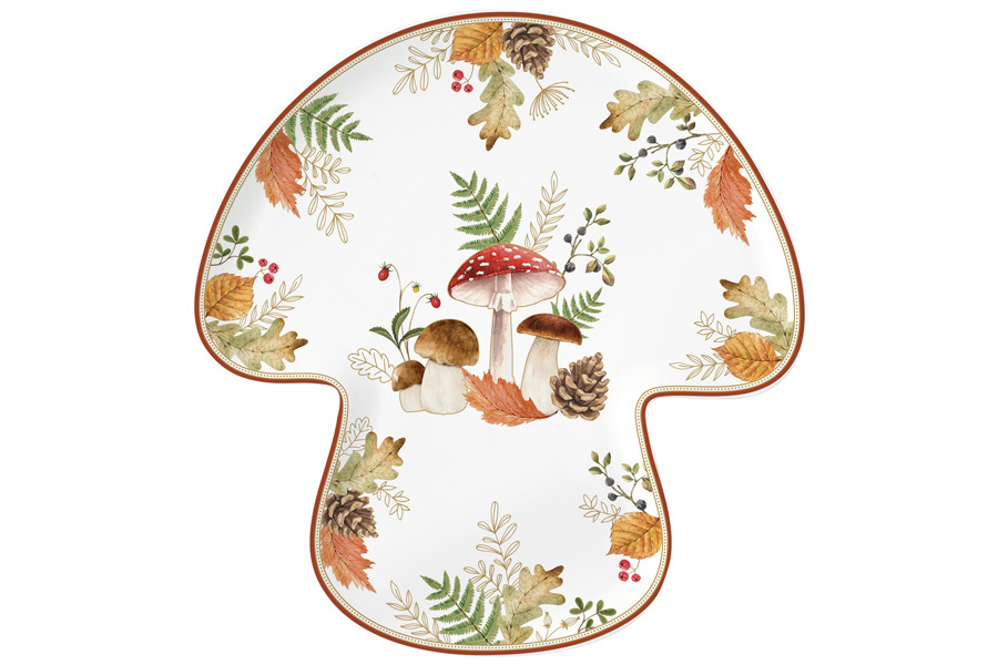 Блюдо, 30х28 см, фарфор P, белое, с коричневым кантом, Гриб, Autumn Breeze