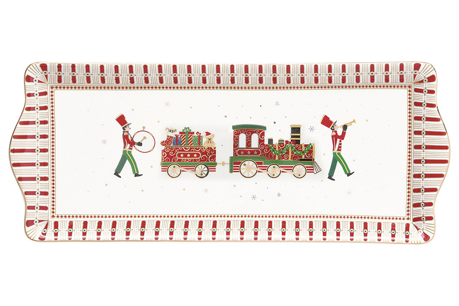 Блюдо, 35х15 см, фарфор P, белое, с золотистым кантом, прямоугольное, Паровоз, Polar Express