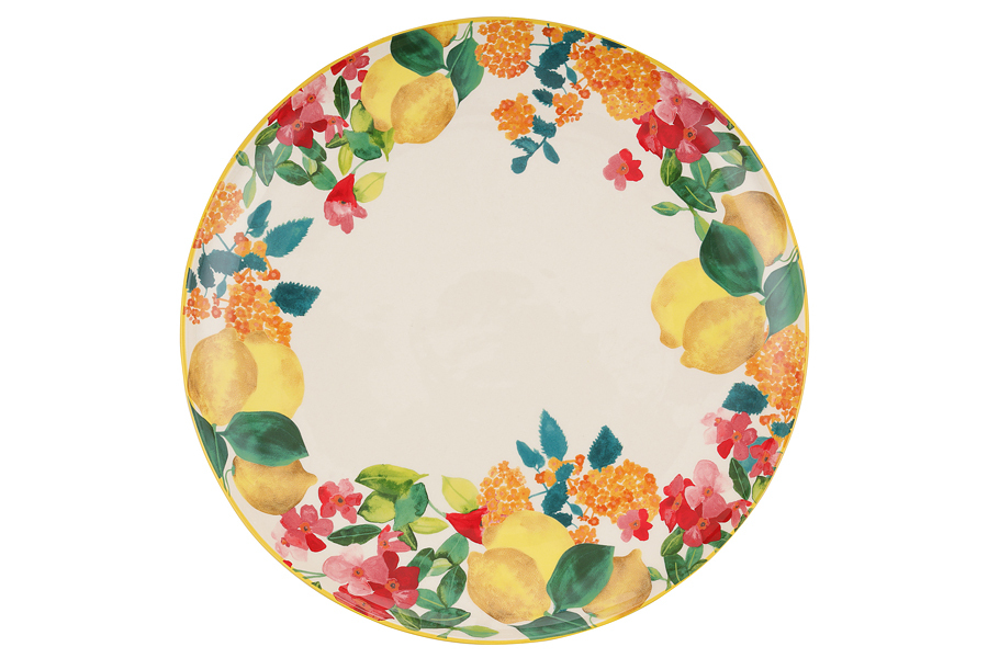 Блюдо, 36 см, керамика К, круглое, молочное, Лимоны, Capri