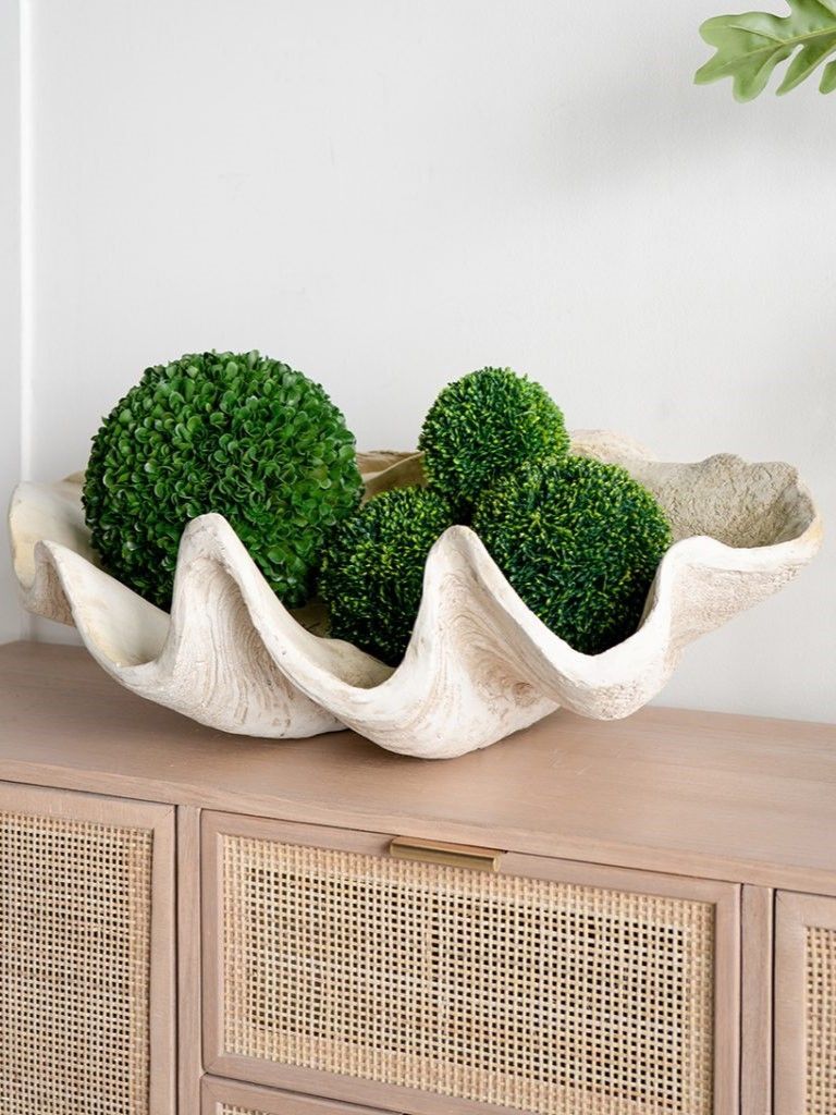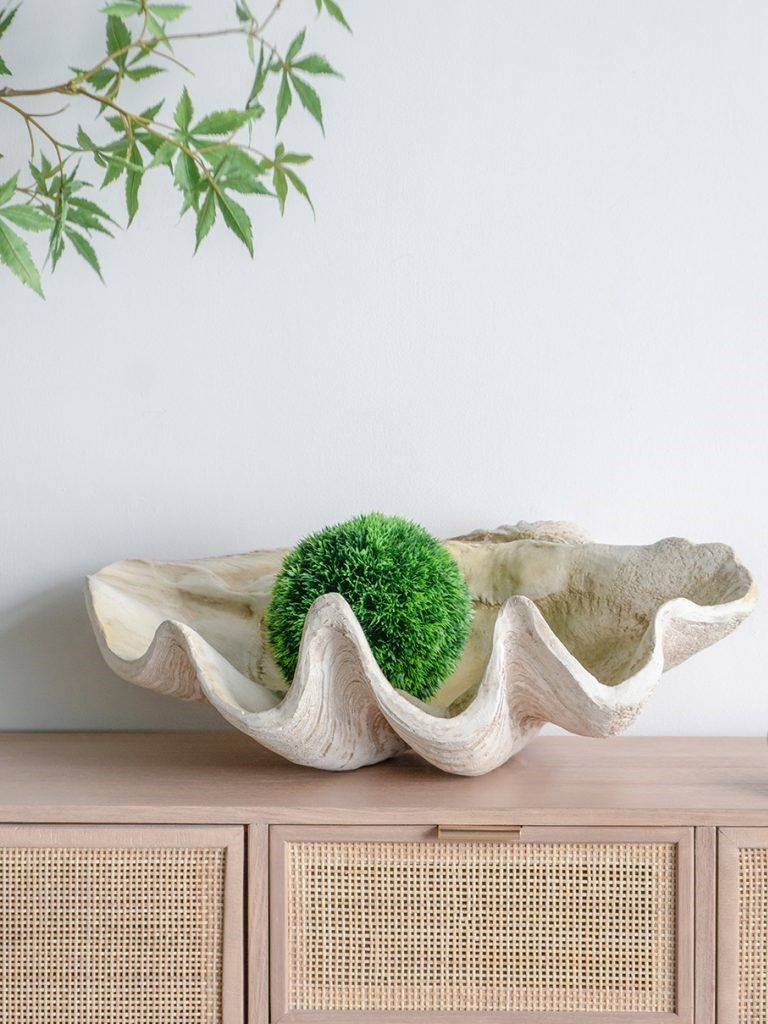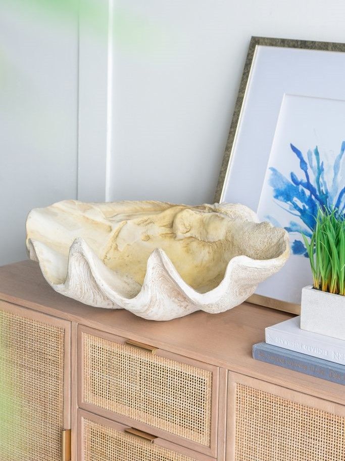 Декоративное блюдо в виде роскошной морской раковины отличается индивидуальностью и своей детальной конструкцией, являясь во многих культурах символом богатства и процветания. Такой предмет станет прекрасным дополнением к небольшому столу или комоду, размещая различные нужные вещи при входе в дом.