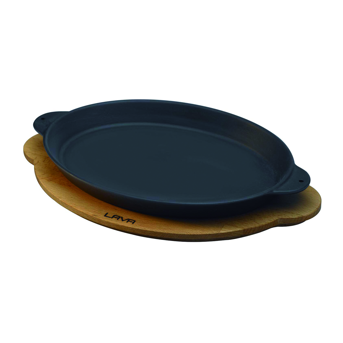 Блюдо для фахитас овальное с ручками и деревянным подносом 18x24cm.