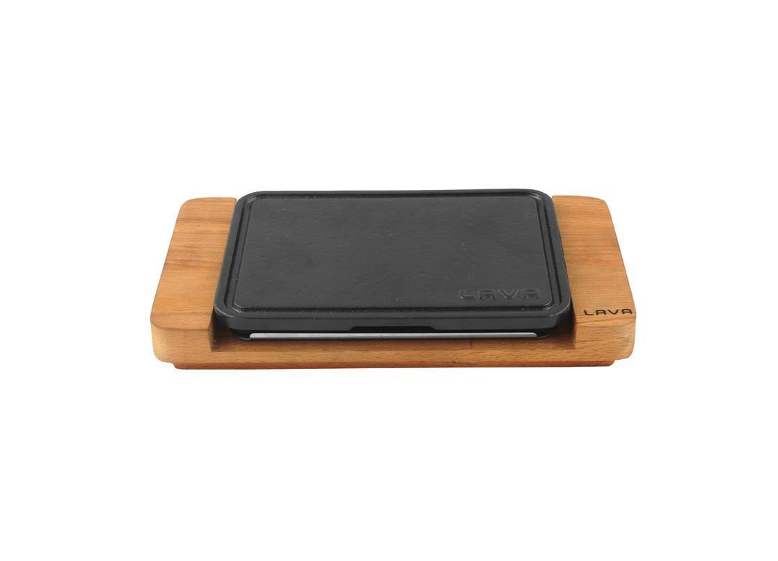 Блюдо для горячего квадрат на деревянном подносе со стальным основанием 22x16cm.