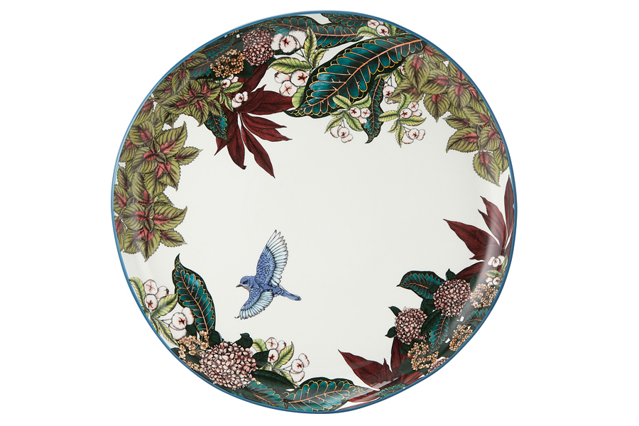 Блюдо, 36 см, керамика К, круглое, белое, Цветы и птица, Reminisce