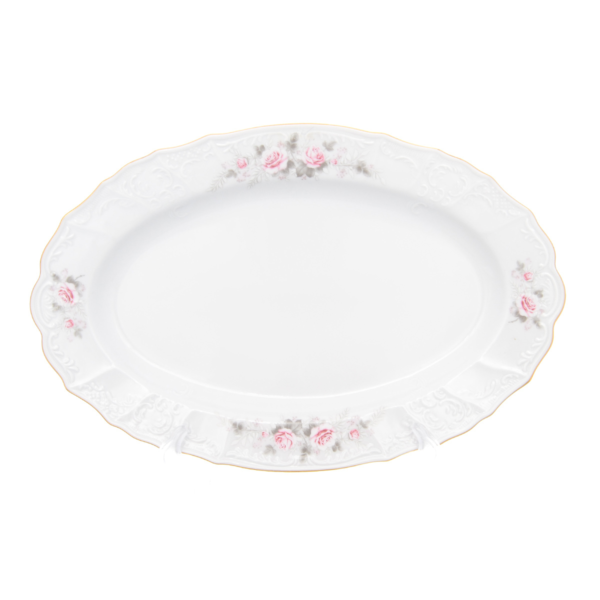 Блюдо овальное 36 см Бернадотт Серая роза золото
