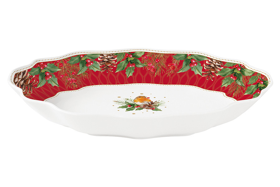 Блюдо, 30х21 см, фарфор P, белое, с красным кантом, овальное, Ягоды и листья, Christmas Berries