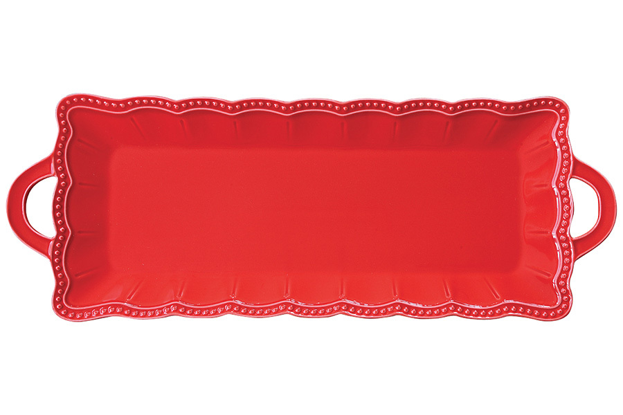 Блюдо прямоугольное с ручками Elite, красное, 43х16 см