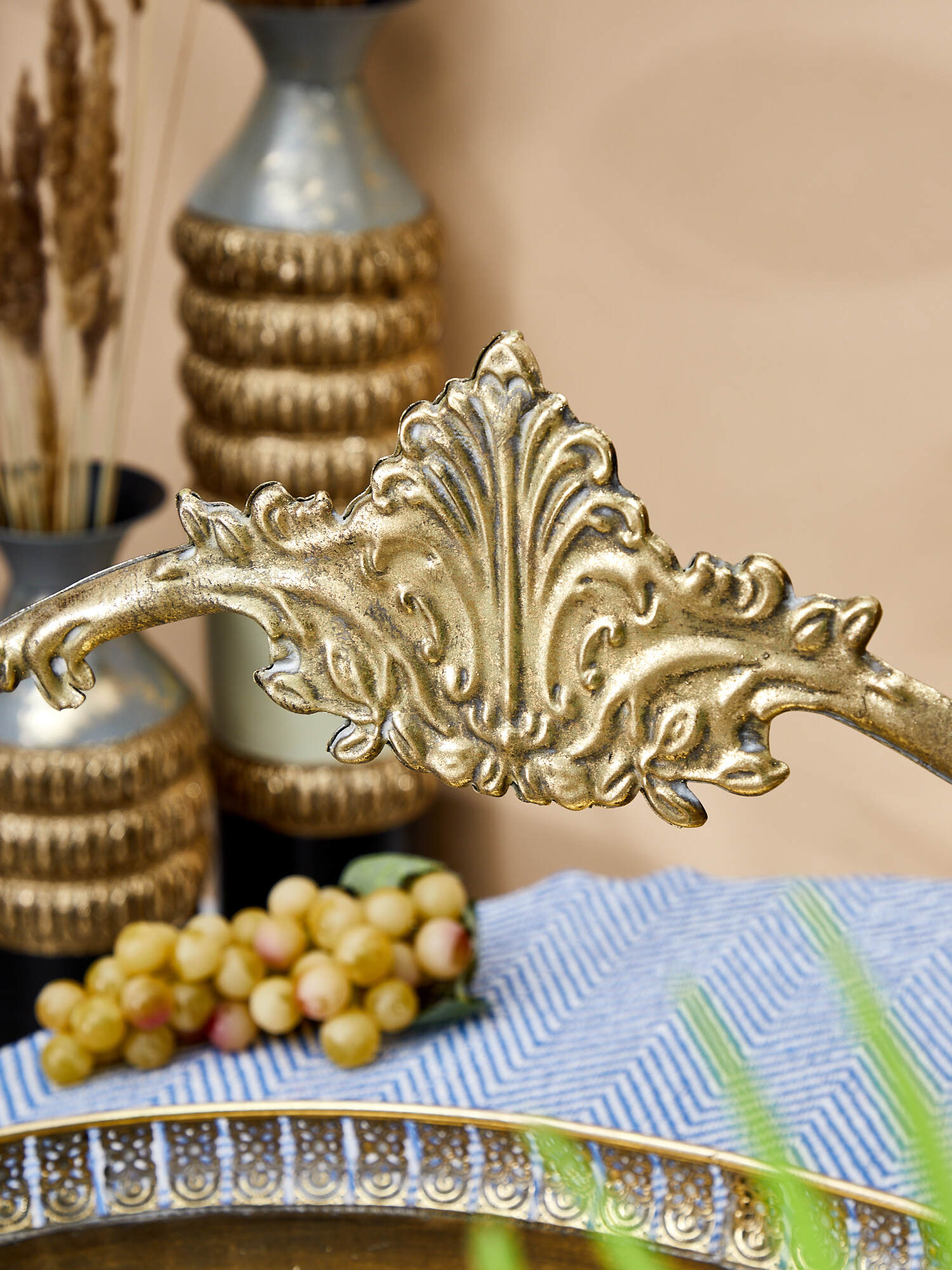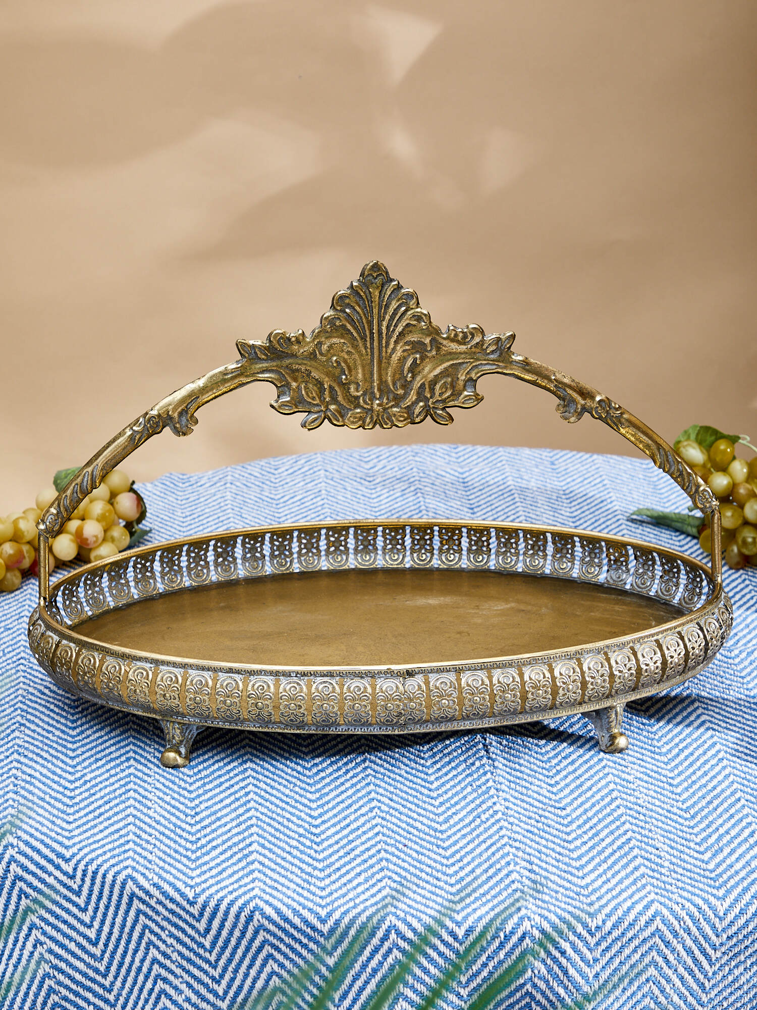 Металлическое блюдо с ручкой Эфиопия, выполненное в африканском стиле с напылением золотистого цвета, придаст современный вид любому столу. Изделие имеет признаки искусственного состаривания, поверхность декорирована с эффектом патинирования, а наличие сварочных фрагментов подчеркивают принадлежность к ручной работе. Сдержанный дизайн изделия станет отличным акцентом и дополнением к Вашему интерьеру. Эксклюзивные формы и фактуры навеяло богатство культуры Африки, множество художественных традиций и таинственная атмосфера, окутывающая неподражаемостью.