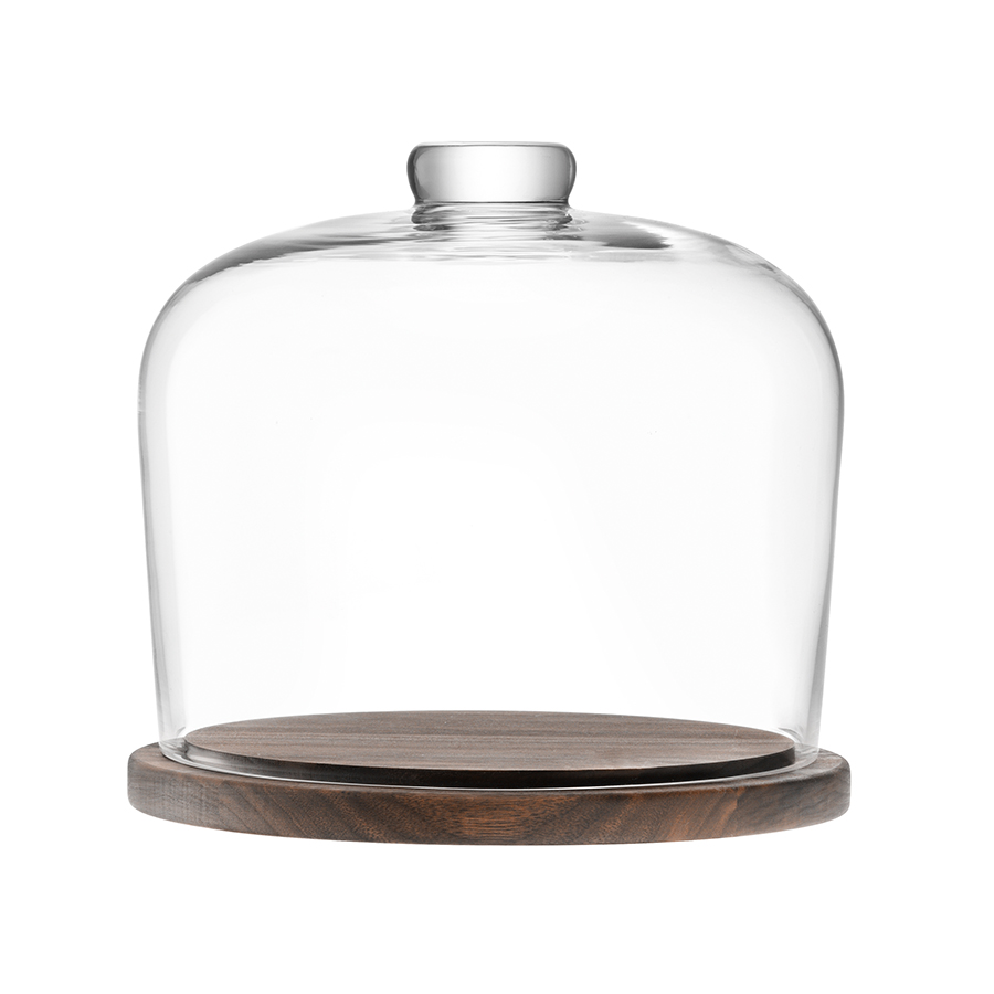 "Блюдо City из натурального ореха с крышкой-колпаком из выдувного стекла прекрасно подойдет для сервировки выпечки, сыров, десертов и фруктов.