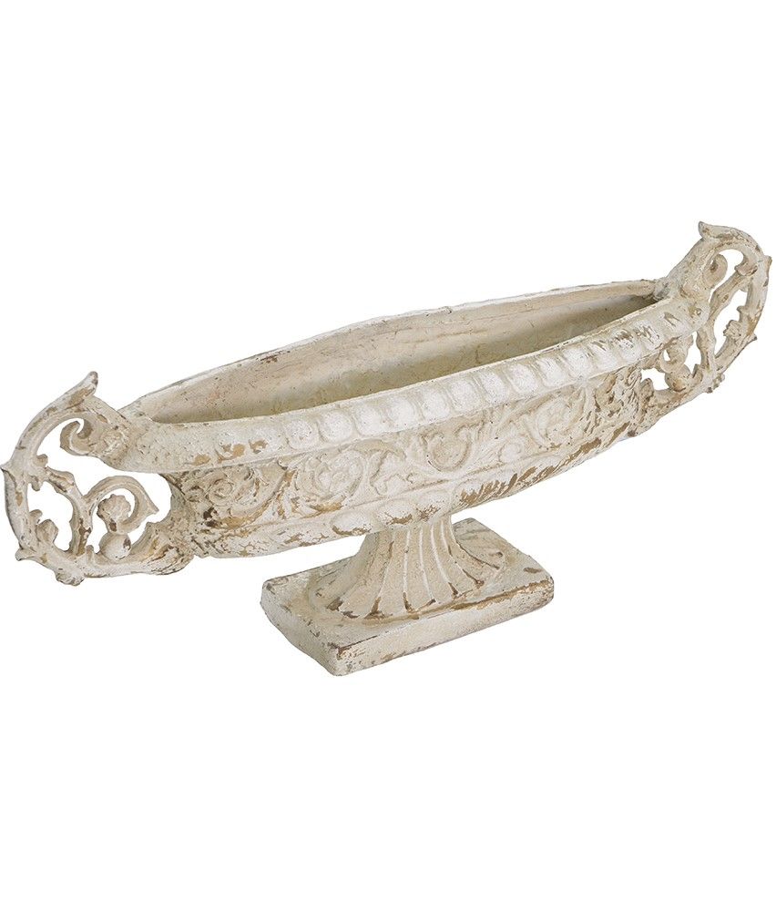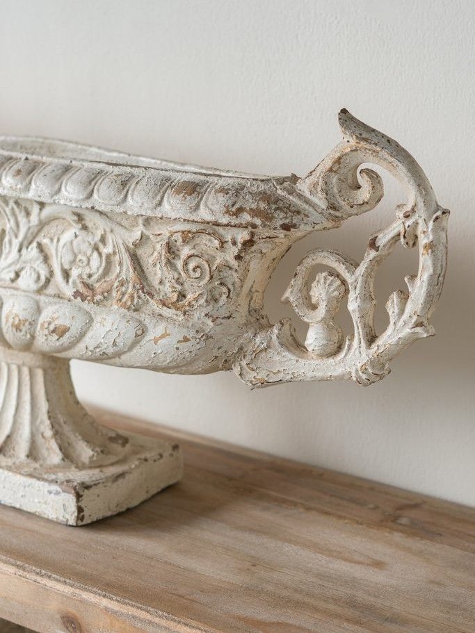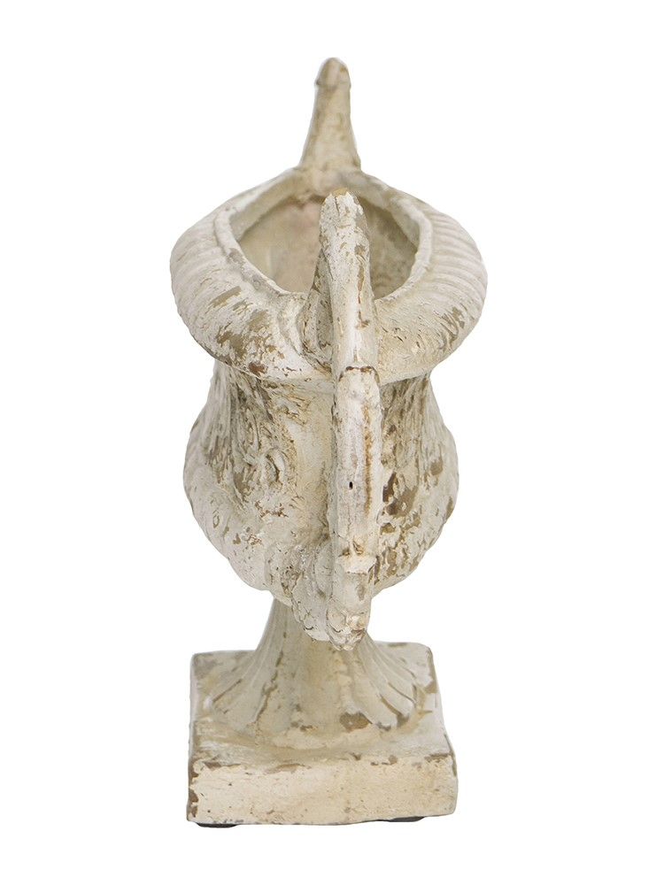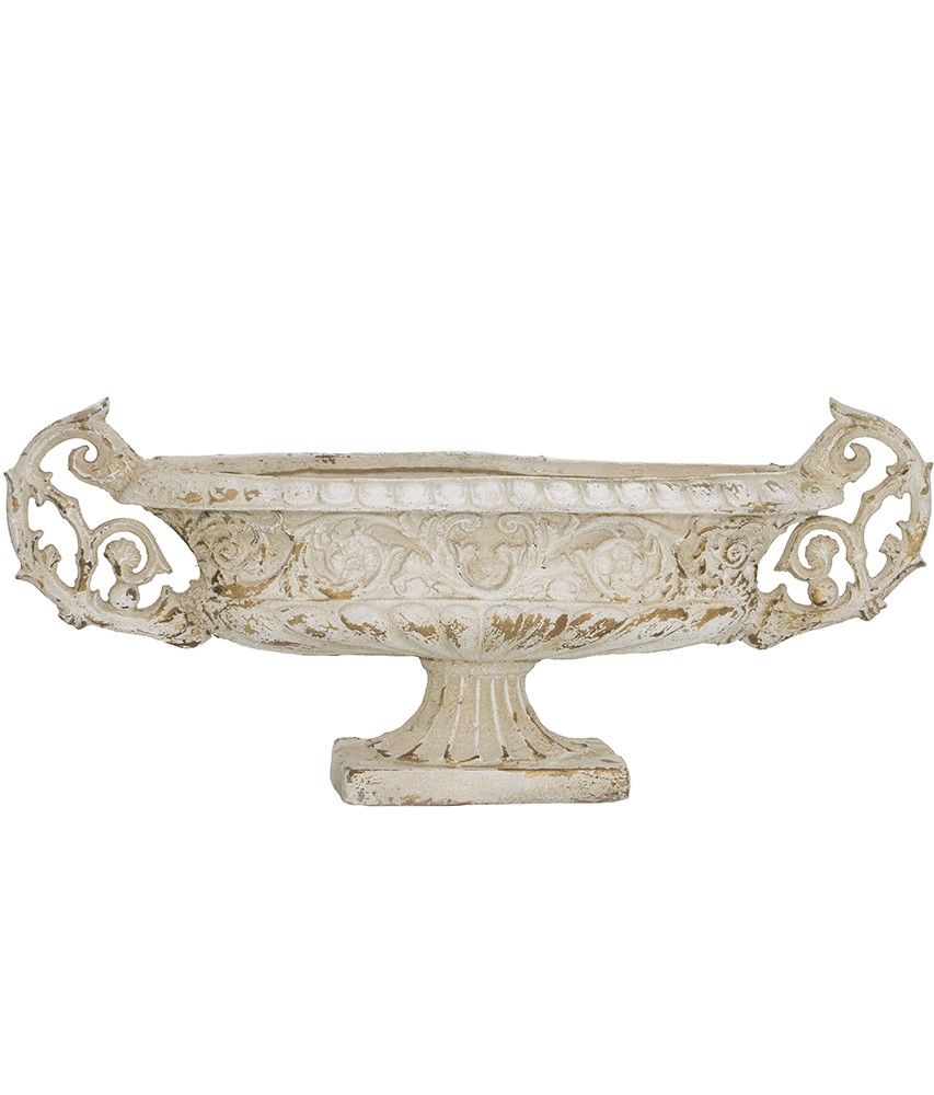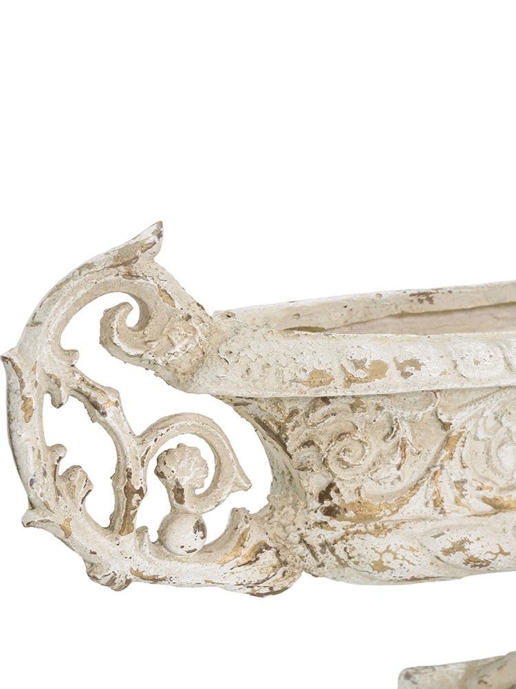 Декоративная чаша в античном стиле, передающая сложную красоту старинных произведений искусства, имеет выветренную белую отделку, прочное основание-пьедестал и две декоративные резные ручки. Изделие без сомнений будет привлекать внимание, демонстрируя себя на каминной полке в гостиной, консольном столике в прихожей или на комоде в спальне, с легкостью дополняя любой стиль интерьера.