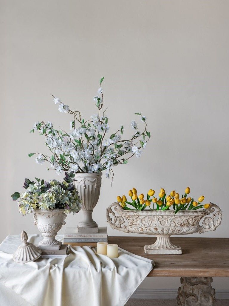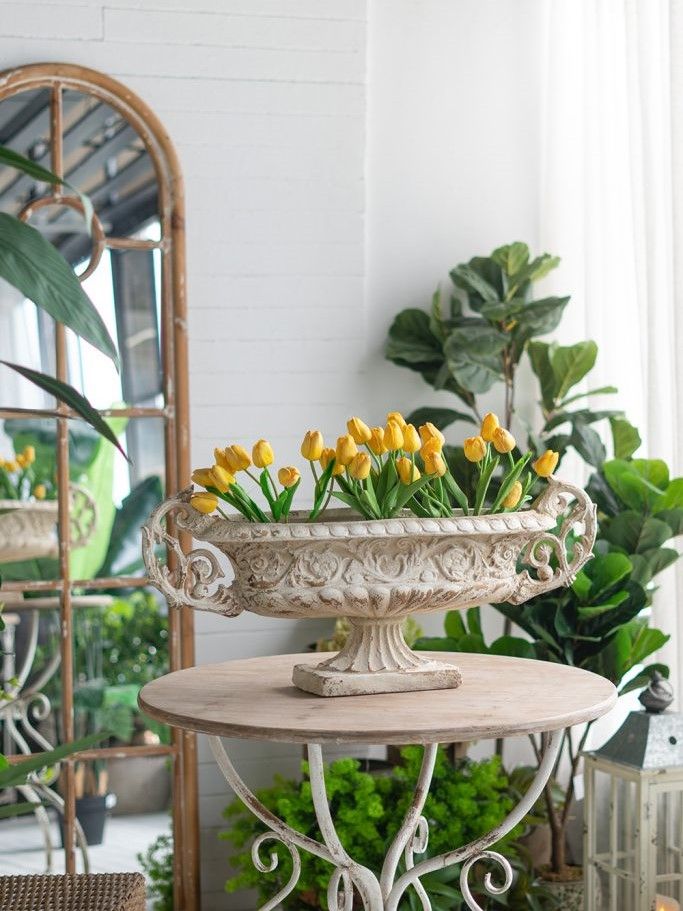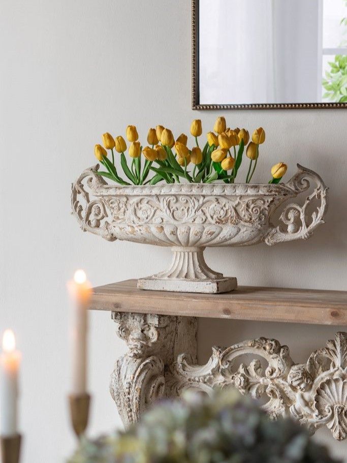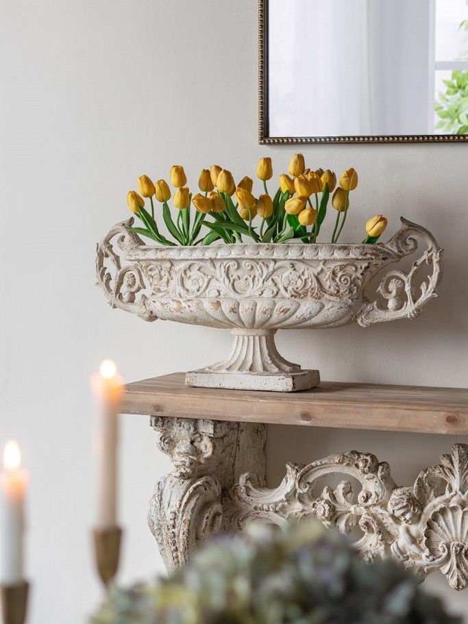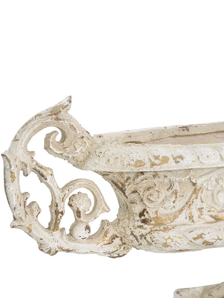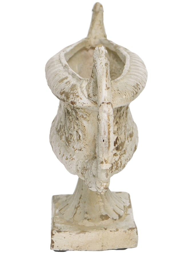 Декоративная чаша в античном стиле, передающая сложную красоту старинных произведений искусства, имеет выветренную белую отделку, прочное основание-пьедестал и две декоративные резные ручки. Изделие без сомнений будет привлекать внимание, демонстрируя себя на каминной полке в гостиной, консольном столике в прихожей или на комоде в спальне, с легкостью дополняя любой стиль интерьера.