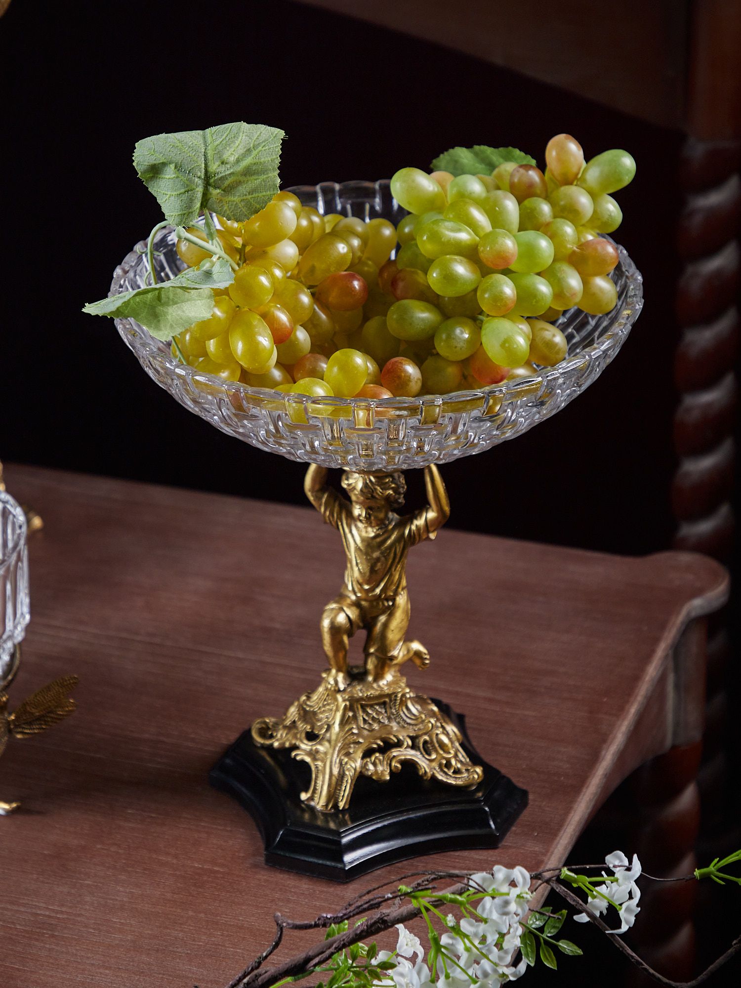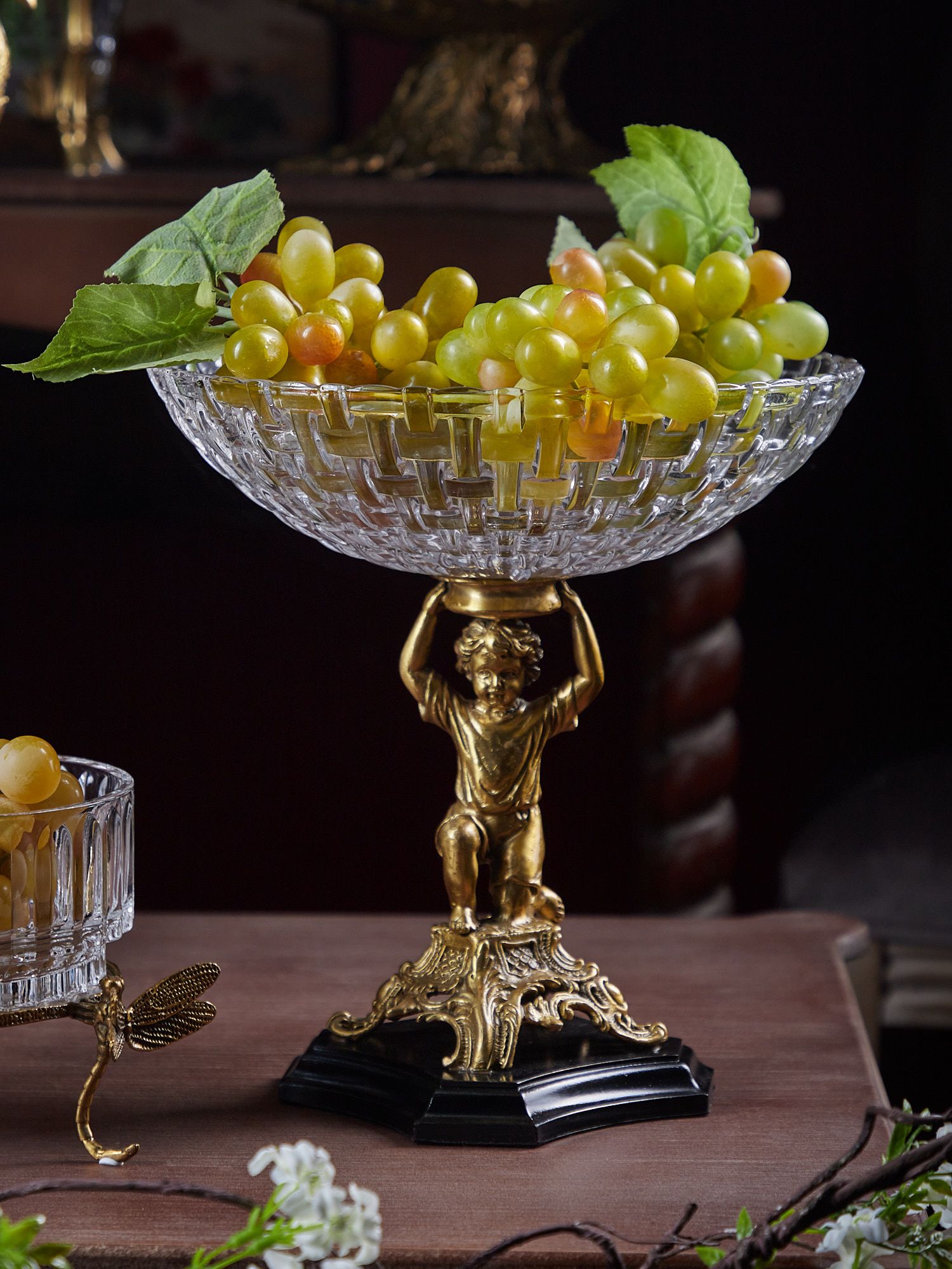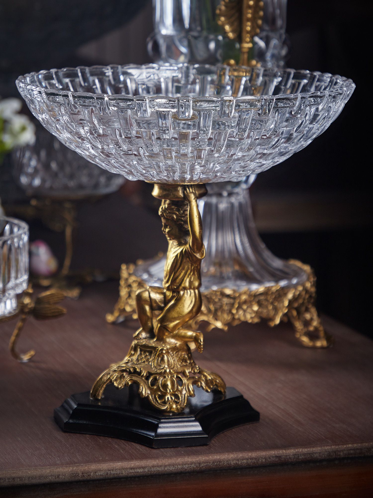 Изысканная чаша с подножием в виде ангела, выполнена из стекла и фарфора с бронзовыми элементами. Уникальное изделие ручной работы. При производстве этих художественных изделий используются вековые традиции китайских мастеров.