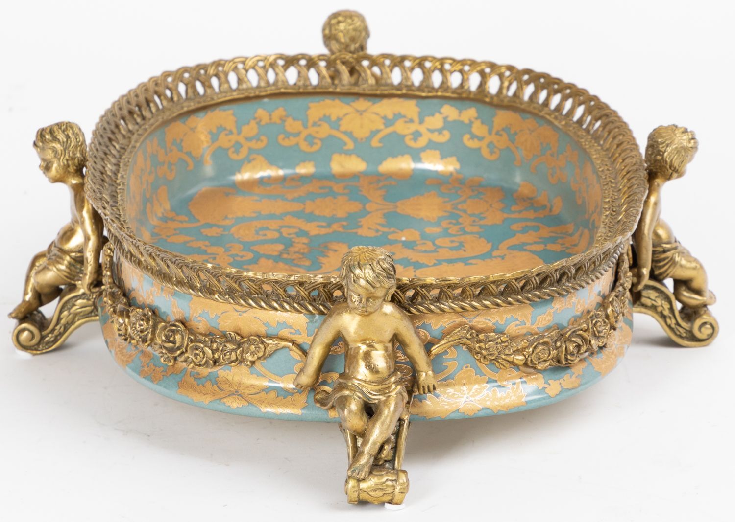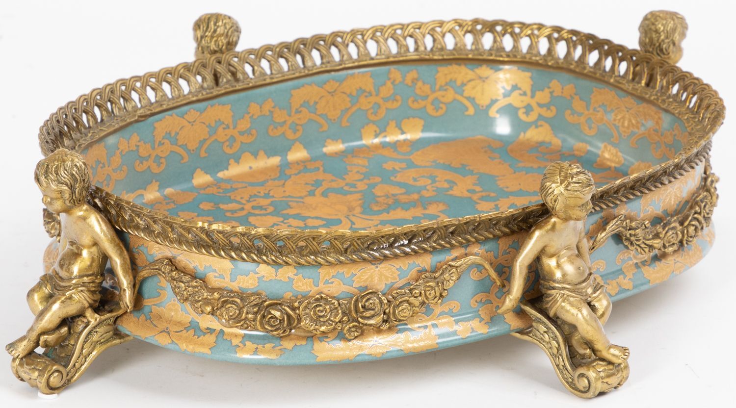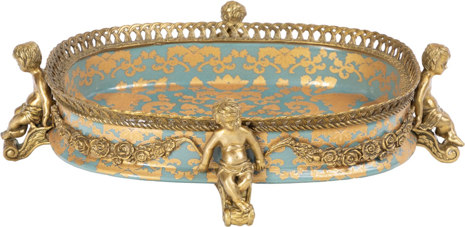 Чаша на ангелах, выполненная из фарфора с бронзовыми элементами. Уникальное изделие ручной работы. При производстве этих художественных изделий из фарфора с бронзой используются вековые традиции китайских мастеров. Видимые трещинки (кракелюры) делаются по уникальной технологии, что придает более благородный вид старинного изделия.