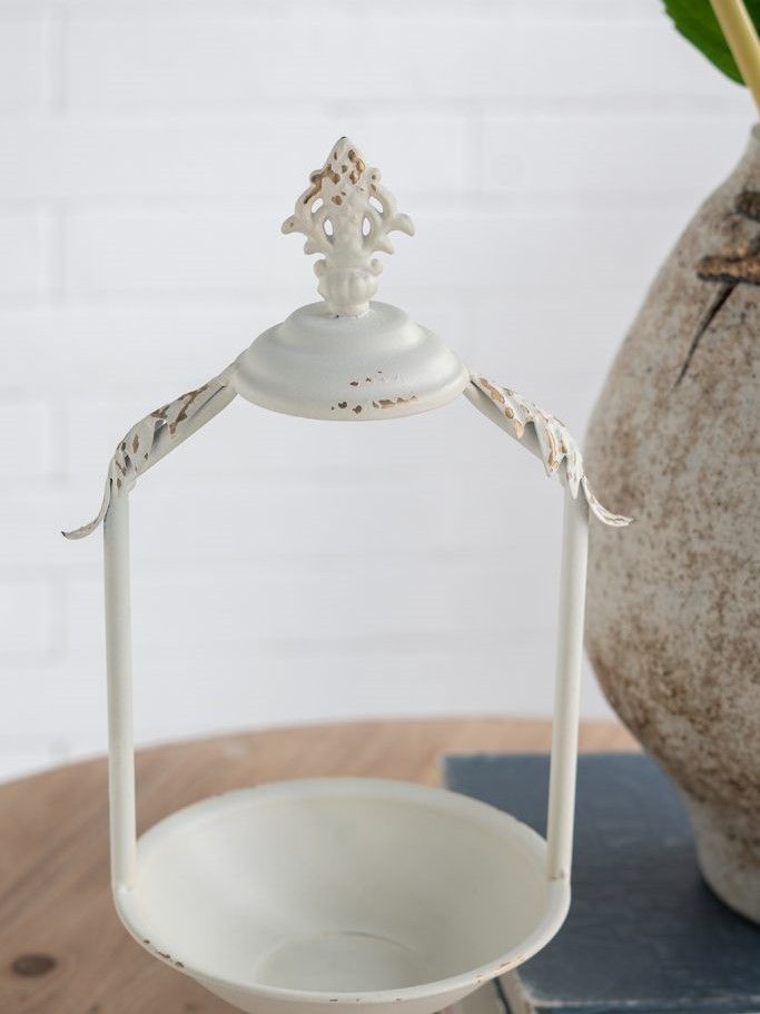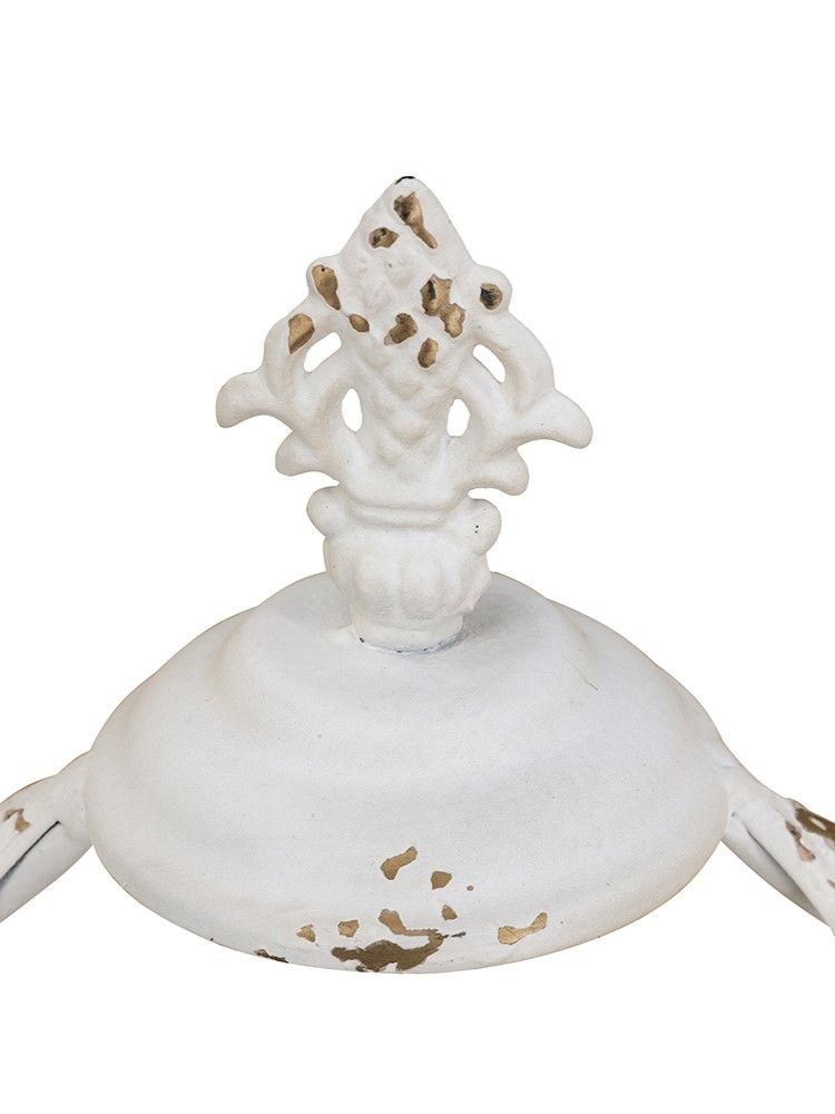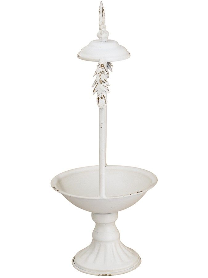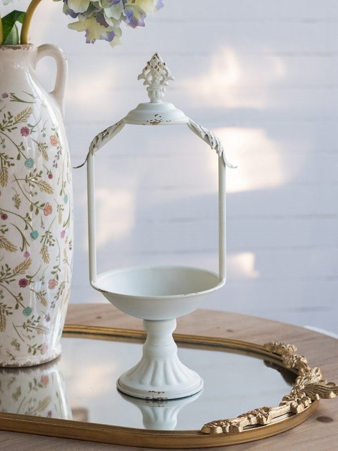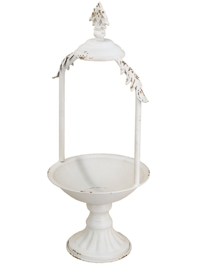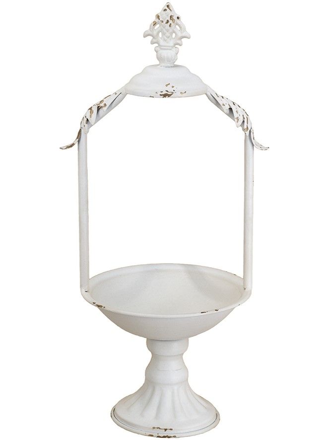 Стильная чаша на пьедестале, воплощающая сдержанную элегантность французского стиля кантри, имеет круглое основание, неглубокую чашу и тонкую арочную раму с заостренным держателем. Изделие, выполненное в белом цвете с эффектом состаренности, обязательно привлечет внимание на любой поверхности стола, комоде, серванте или барной стойке, сочетаясь с такими стилями, как французский кантри, шебби-шик, фермерский и традиционный.