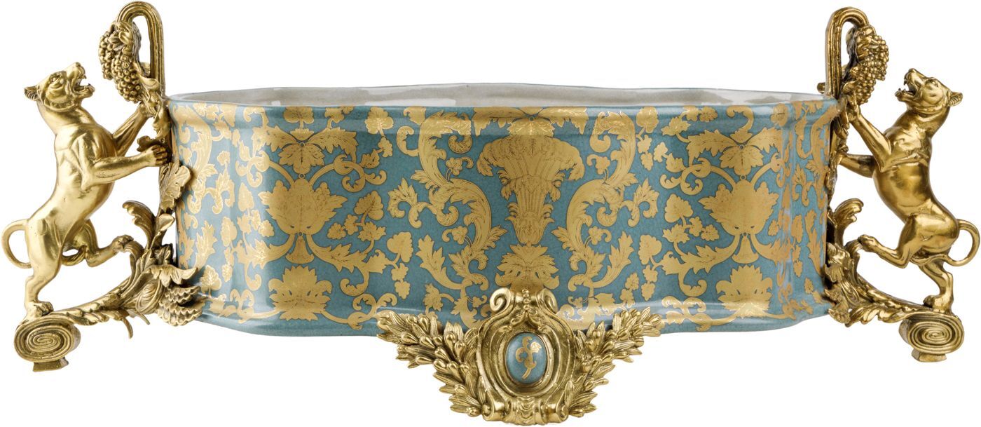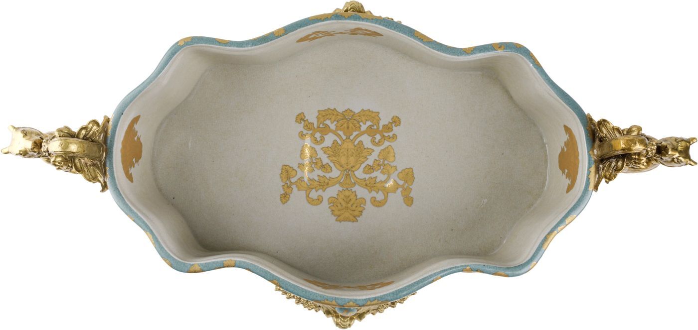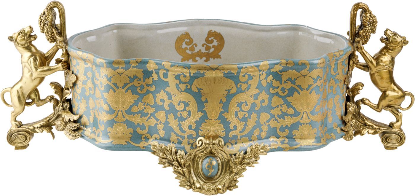Изысканная чаша с величественными львами, выполненная из фарфора с бронзовыми элементами. Уникальное изделие ручной работы. При производстве этих художественных изделий из фарфора с бронзой используются вековые традиции китайских мастеров. Видимые трещинки (кракелюры) делаются по уникальной технологии, что придает более благородный вид старинного изделия.