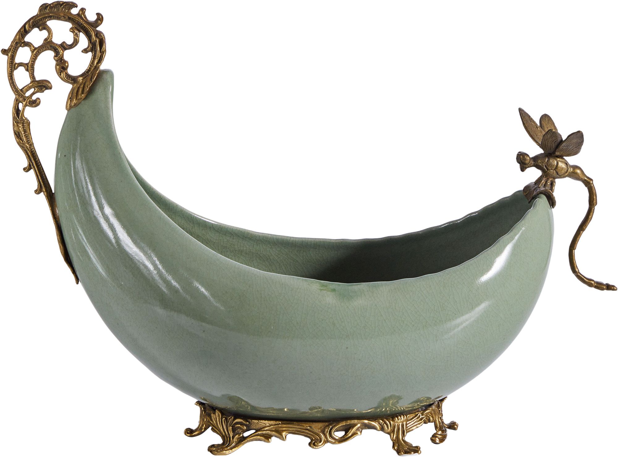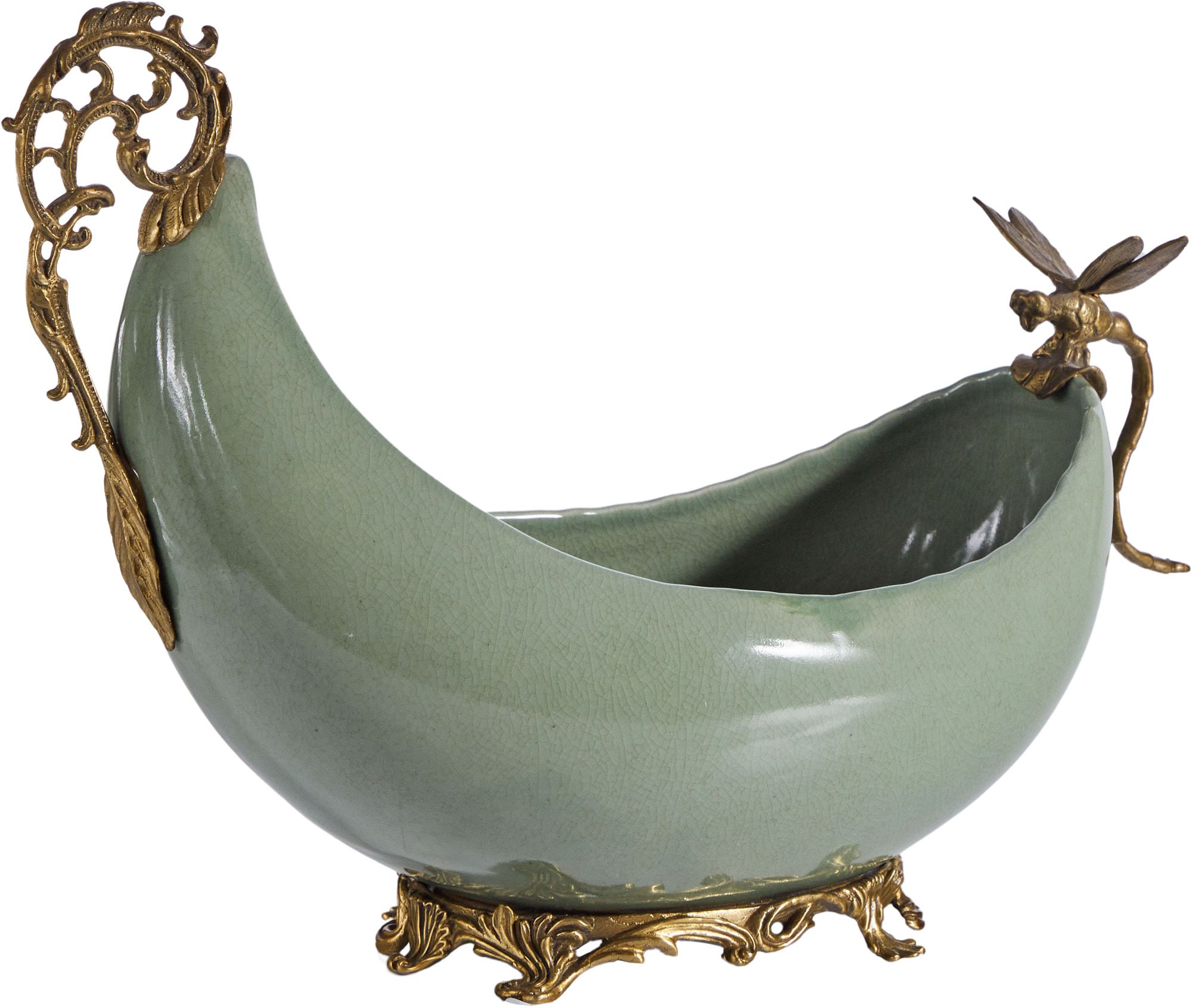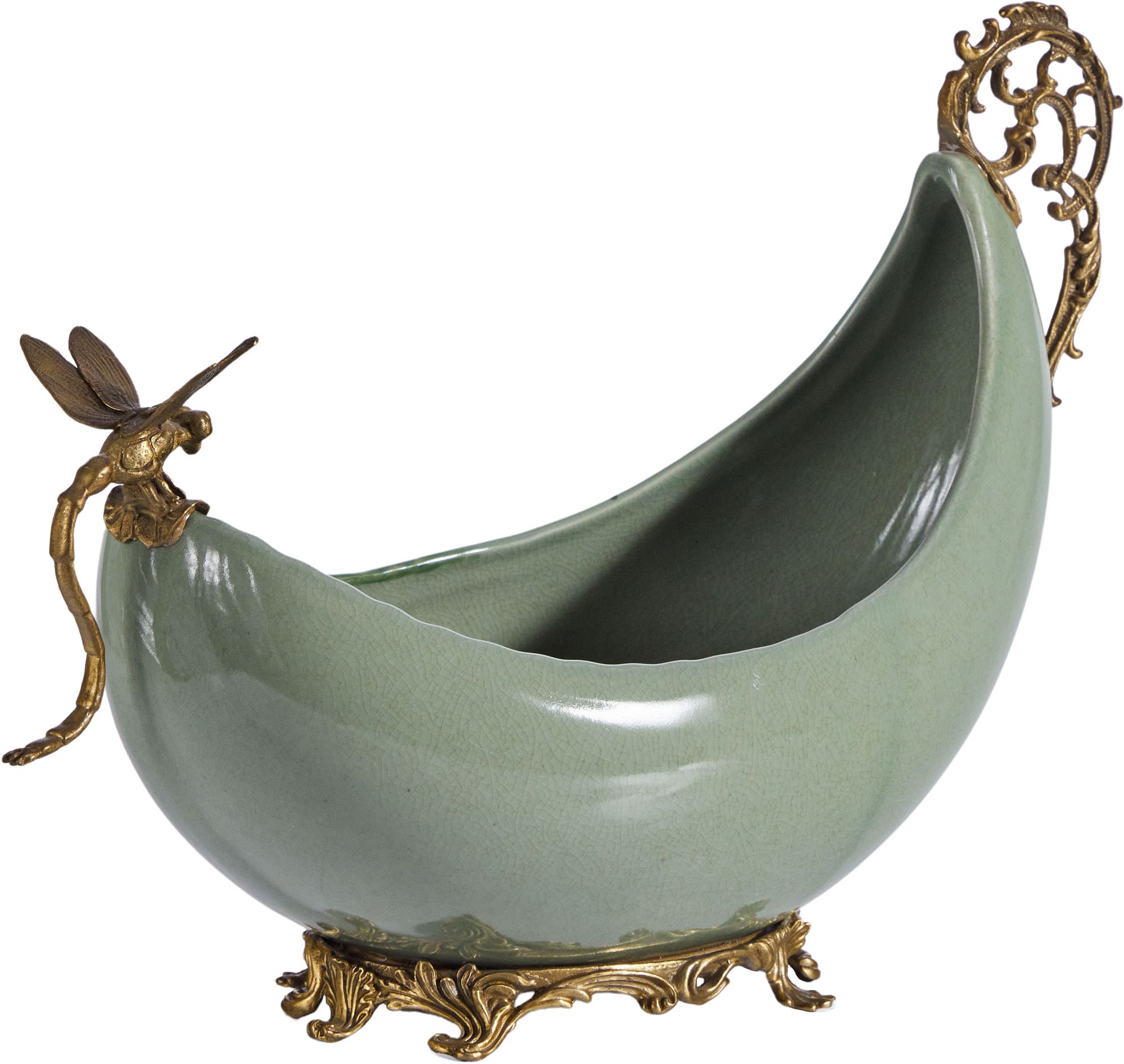 Чаша со стрекозой, выполненная из фарфора с бронзовыми элементами. Уникальное изделие ручной работы. При производстве этих художественных изделий из фарфора с бронзой используются вековые традиции китайских мастеров. Видимые трещинки (кракелюры) делаются по уникальной технологии, что придает более благородный вид старинного изделия.
