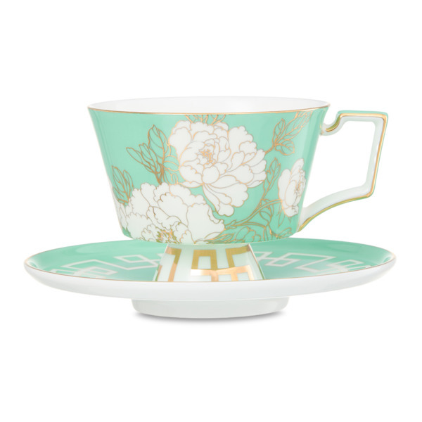 Чашка чайная с блюдцем Decor de table Винтаж Магнолия 240 мл, фарфор костяной, мятная, п/к