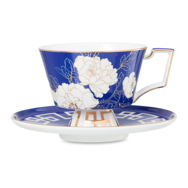 Чашка чайная с блюдцем Decor de table Винтаж Магнолия 240 мл, фарфор костяной, ультрамарин, п/к