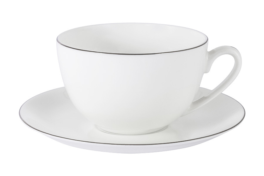 Пара чайная, 1 перс, 2 пр, 250 мл, фарфор F, белая, с серебристым кантом, Arctic