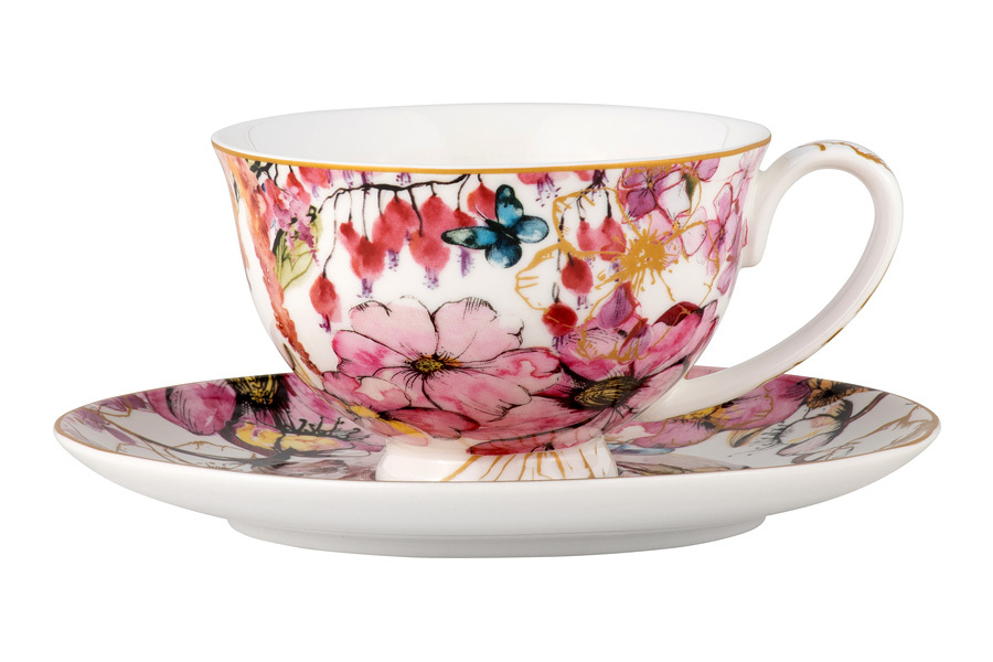 Пара чайная, 1 перс, 2 пр, 200 мл, фарфор P, бело-розовая, Цветы, Estelle