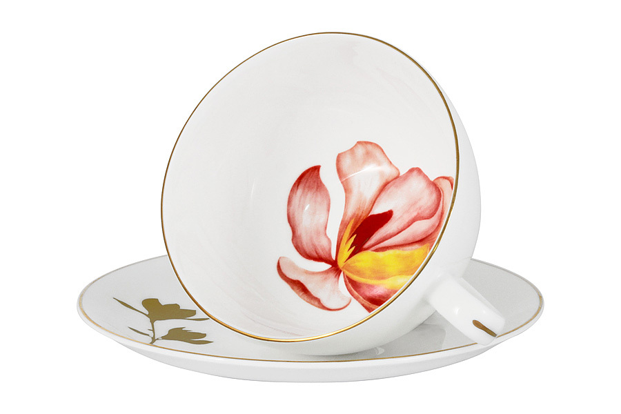 Пара чайная, 1 перс, 2 пр, 250 мл, фарфор F, белая, с золотистым кантом, Магнолия, Flowers
