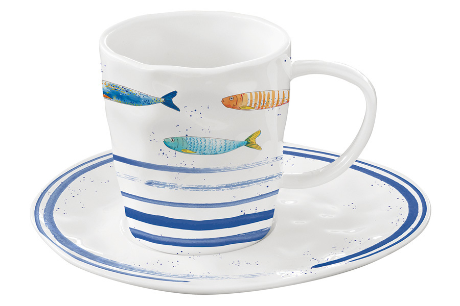 Пара чайная, 1 перс, 2 пр, 250 мл, фарфор P, белая, с синим кантом, Рыбы, Bord de mer