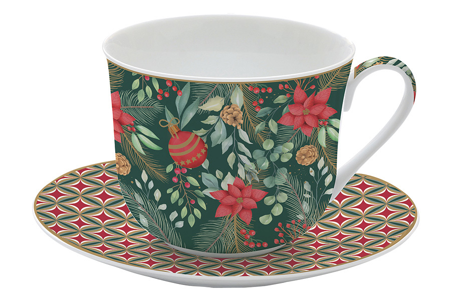 Чашка с блюдцем Рождественское веселье, 0,4 л