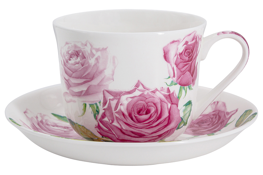 Пара чайная, 1 перс, 2 пр, 450 мл, фарфор F, белая, Розы, Floriada