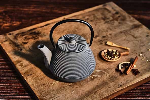 Чайник с крышкой и ситечком из нерж. стали 1 л, h 13 см, чугун, цвет светло-серый