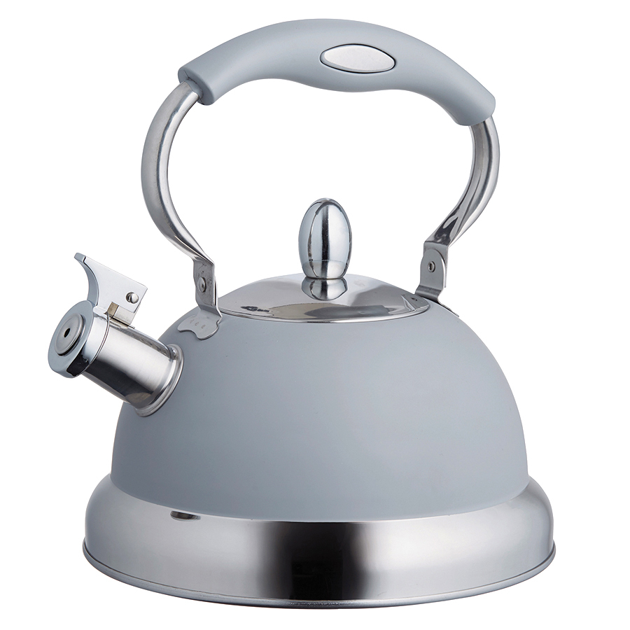 "Чайник со свистком Living – практичная и удобная посуда для приготовления чая, кофе и других горячих напитков. Модель выполнена в мягких пастельных тонах, что позволяет ей стать гармоничным дополнением классического или современного интерьера кухни. При создании посуды используется качественная нержавеющую сталь, которая не поддается воздействию коррозии и высокой температуры. На наружную поверхность корпуса нанесено термостойкое покрытие, которое придает изделию привлекательный внешний вид. Посуда дополнена мягкой ручкой для удобного захвата ладонью и свистком, который сигнализирует о закипании воды. Чайник Living бренда Typhoon подходит для всех видов плит.