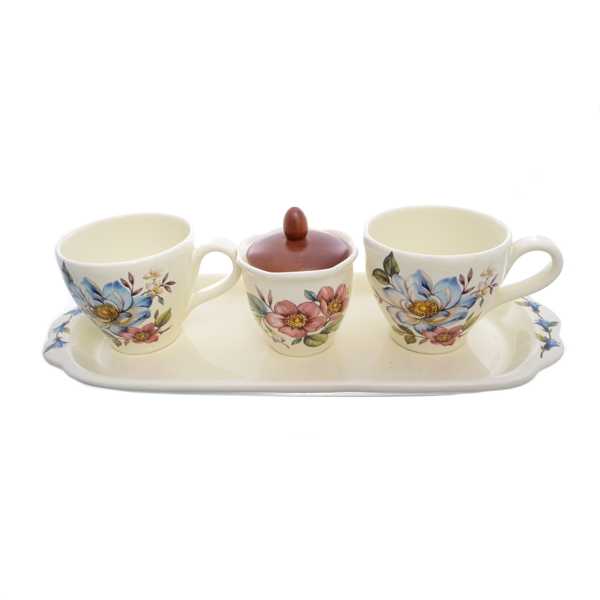 Чайный набор 2 чашки + сахарница + подставка 4 предмета NUOVA CER Лепестки Весны