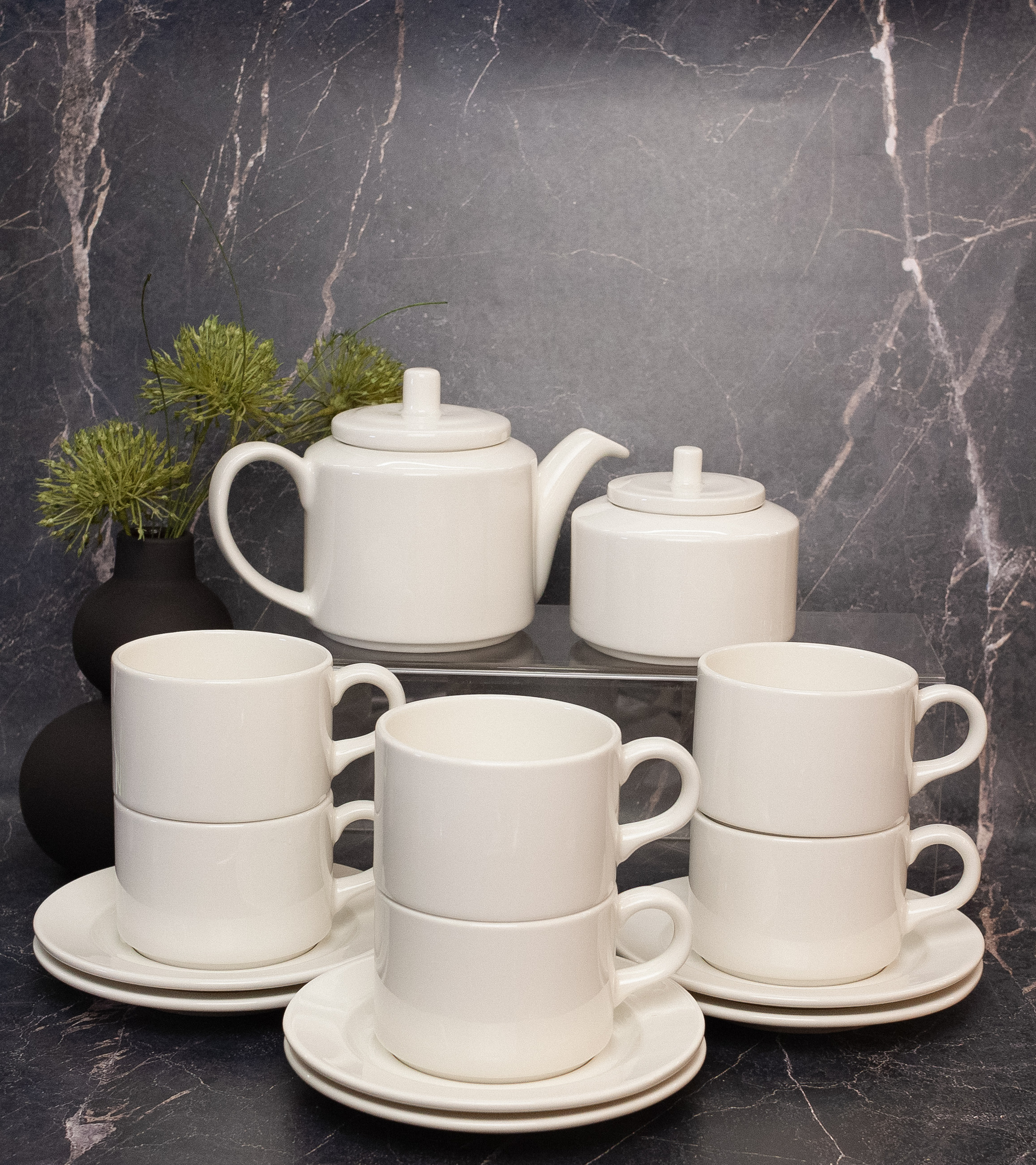 чашка чайная 230 мл - 6 шт<br/>блюдце 15 см для чашки - 6 шт<br/>чайник с крышкой 400 мл - 1 шт<br/>сахарница с крышкой 270 мл - 1 шт