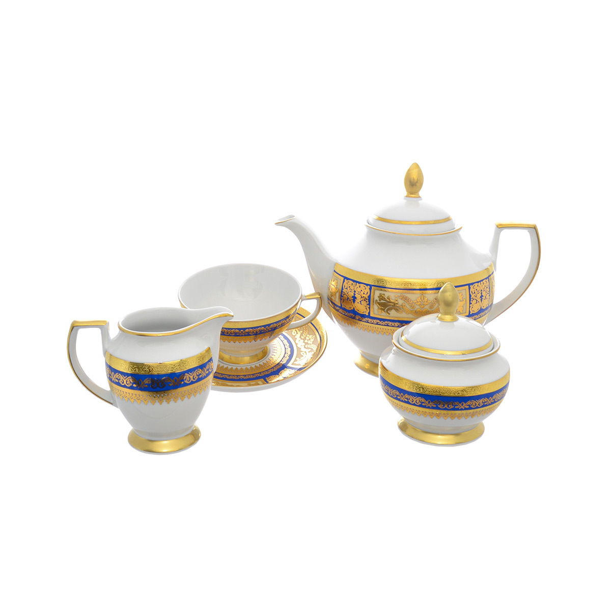 Чайный сервиз Falkenporzellan Diadem Blue Creme Gold 6 персон 17 предметов