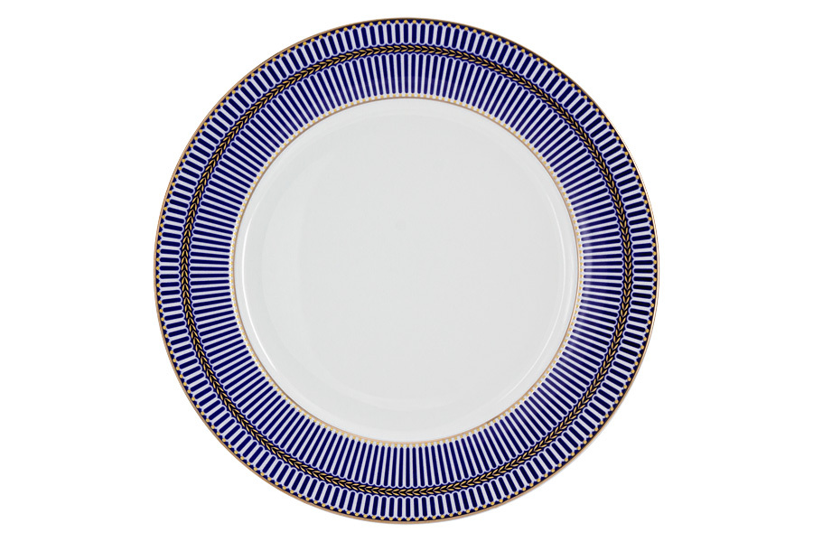 Сервиз чайный, 6 перс, 23 пр, фарфор P, бело-синий, с золотистым кантом, Полосы, Empire