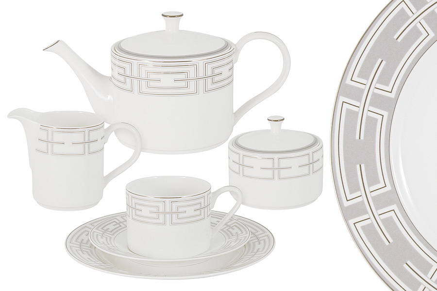 Сервиз чайный, 6 перс, 21 пр, фарфор F, бело-серый, с серебристым кантом, Madison